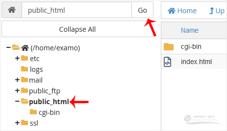 3. In the cPanel File Manager, navigate to the directory where you want to upload your files. The public HTML directory is the most common location for website files. To access it, click on public_html in the list of directories on the left side.