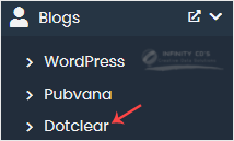 On the left side, locate the Blogs category. Click on it and then on the Dotclear link that appears.