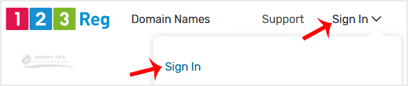 Open the 123 Reg website and click on Sign In. Then, click on "Sign-in" in the pop-up window.