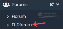 4. On the left side, locate the Forums category. Click on it and then on the FUDforum link that appears.