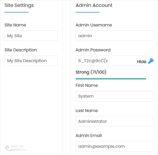 • Admin Email: Your e-mail address.