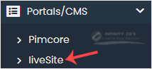 4. On the left side, locate the Portal/CMS category. Click on it and then on the liveSite link that appears.