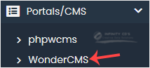 4. On the left side, locate the Portal/CMS category. Click on it and then on the WonderCMS link that appears.