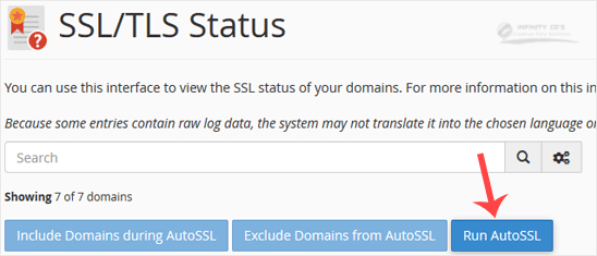 If it shows any errors, try to fix them or open a ticket with us. If it does not show errors, it means AutoSSL did not automatically include your domain. It will help if you force cPanel to run an AutoSSL on your domain and install an SSL Certificate. You can run AutoSSL on your domain in the following way: